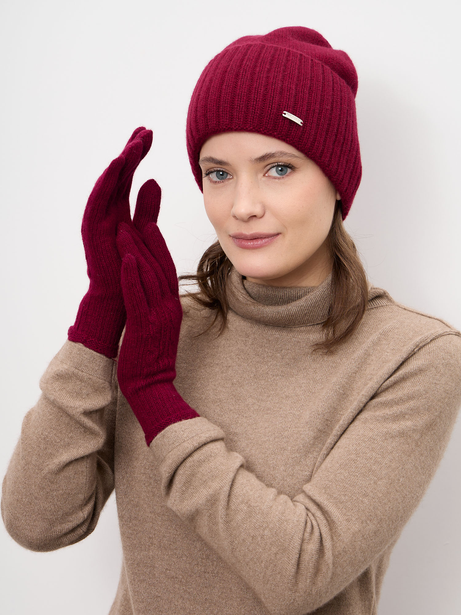 Шапка из кашемира 04301 бордовая