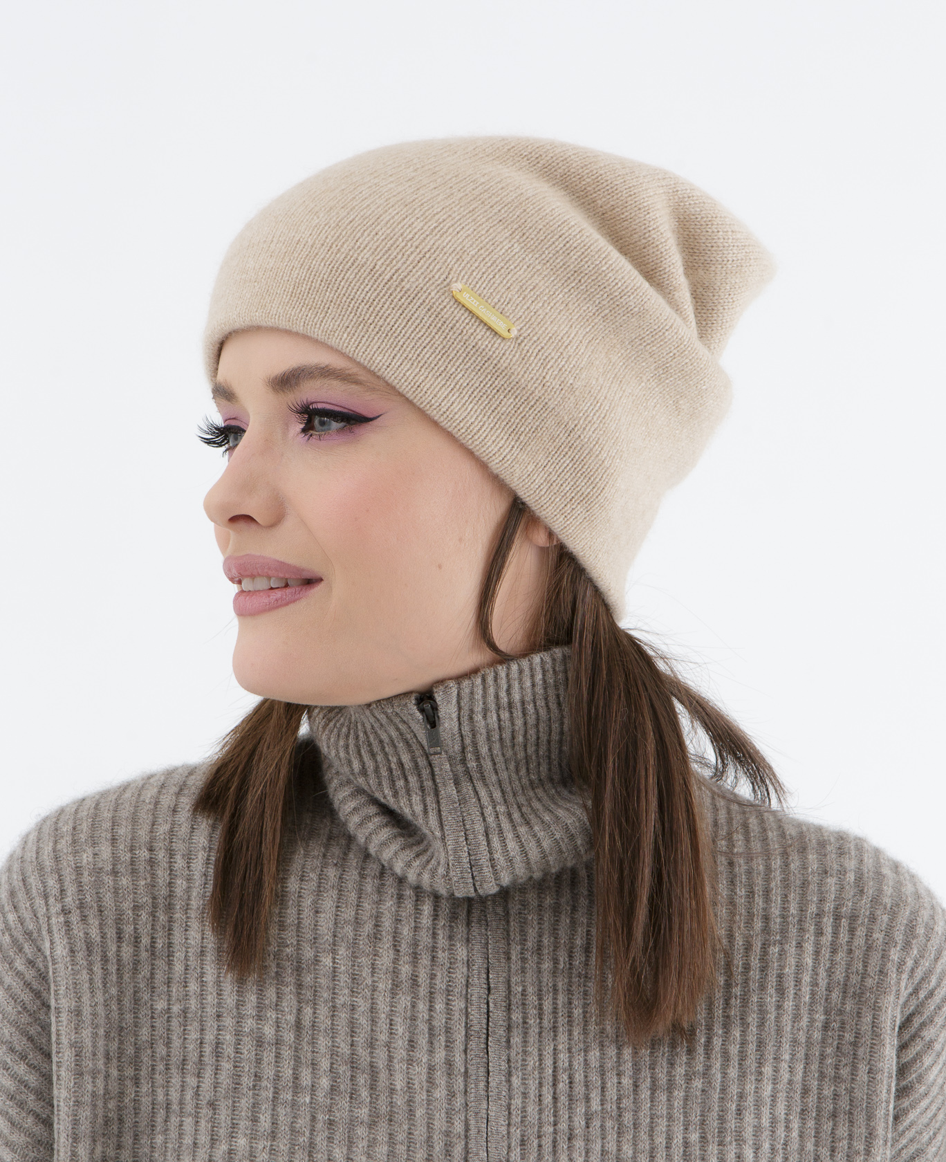 Шапка кашемировая двойная UL бежевая