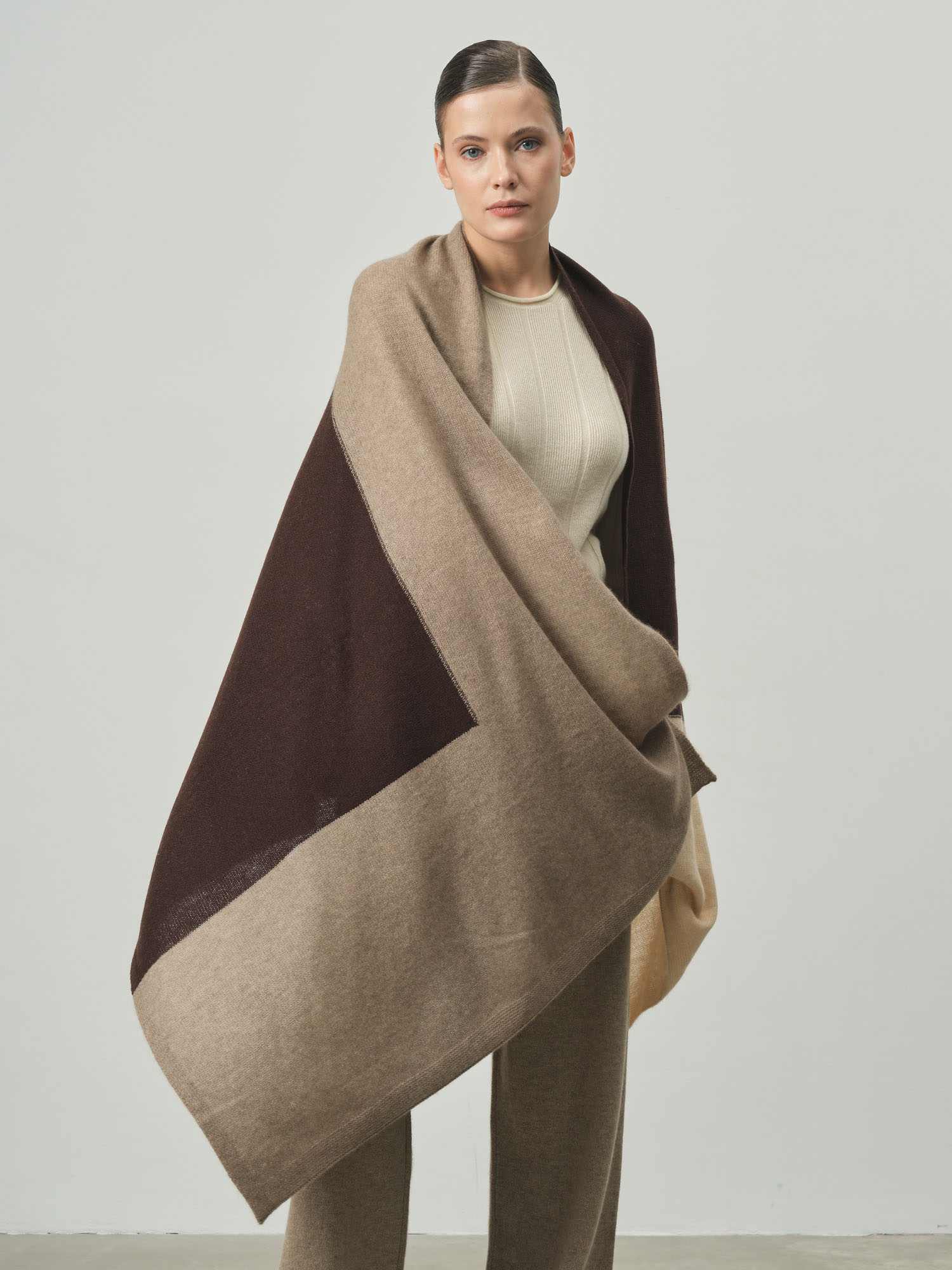 100% кашемир. Натуральный кашемир отличается исключительной мягкостью, лёгкостью и превосходными теплоизоляционными свойствами. Материал приятен к коже и обеспечивает комфорт в прохладную погоду.