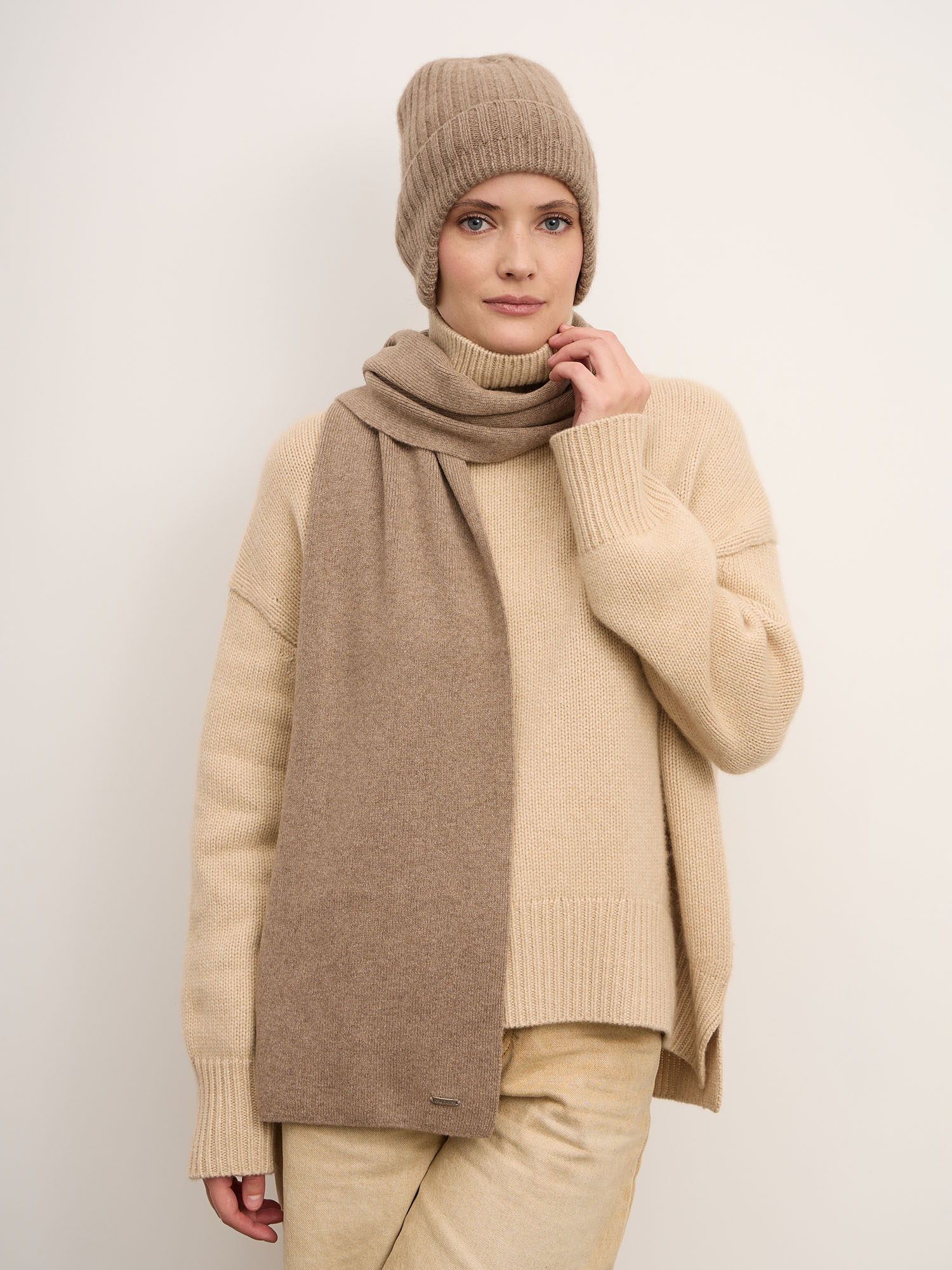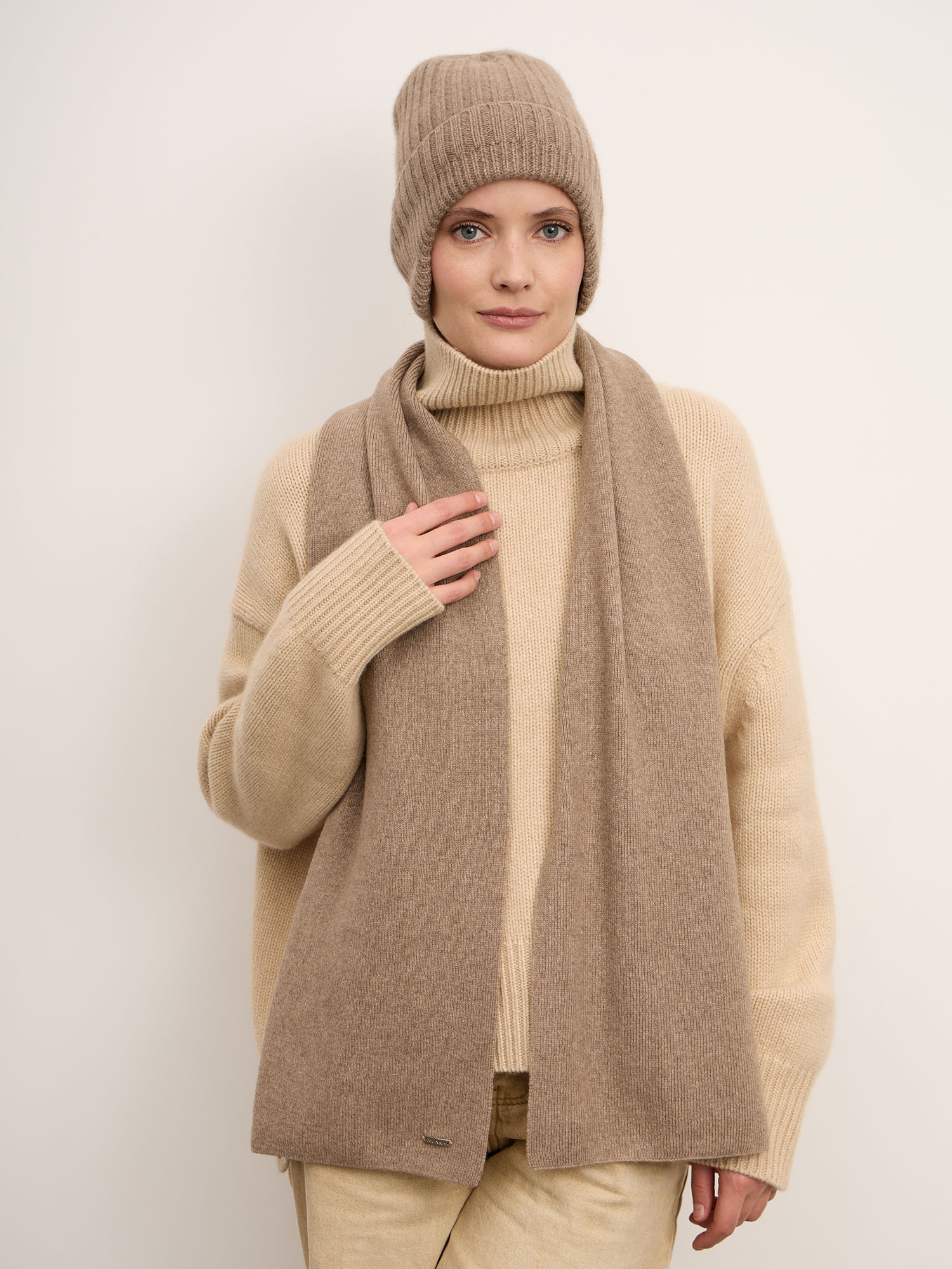 100% кашемир. Натуральный кашемир отличается исключительной мягкостью, лёгкостью и превосходными теплоизоляционными свойствами. Материал приятен к коже, хорошо удерживает тепло и остаётся лёгким и дышащим.