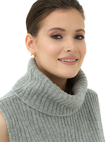 Модель выполнена в виде укороченной накидки с высоким воротником-стойкой. Рельефная вертикальная вязка придаёт изделию выразительную текстуру и помогает сохранять форму. Минималистичный дизайн делает манишку универсальной и современной.