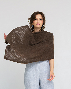 Палантин выполнен в классической прямоугольной форме с изящной ажурной вязкой. Рельефный узор придаёт изделию выразительную текстуру и визуальную лёгкость. Полотно мягко струится и красиво ложится на плечи, создавая элегантный силуэт.