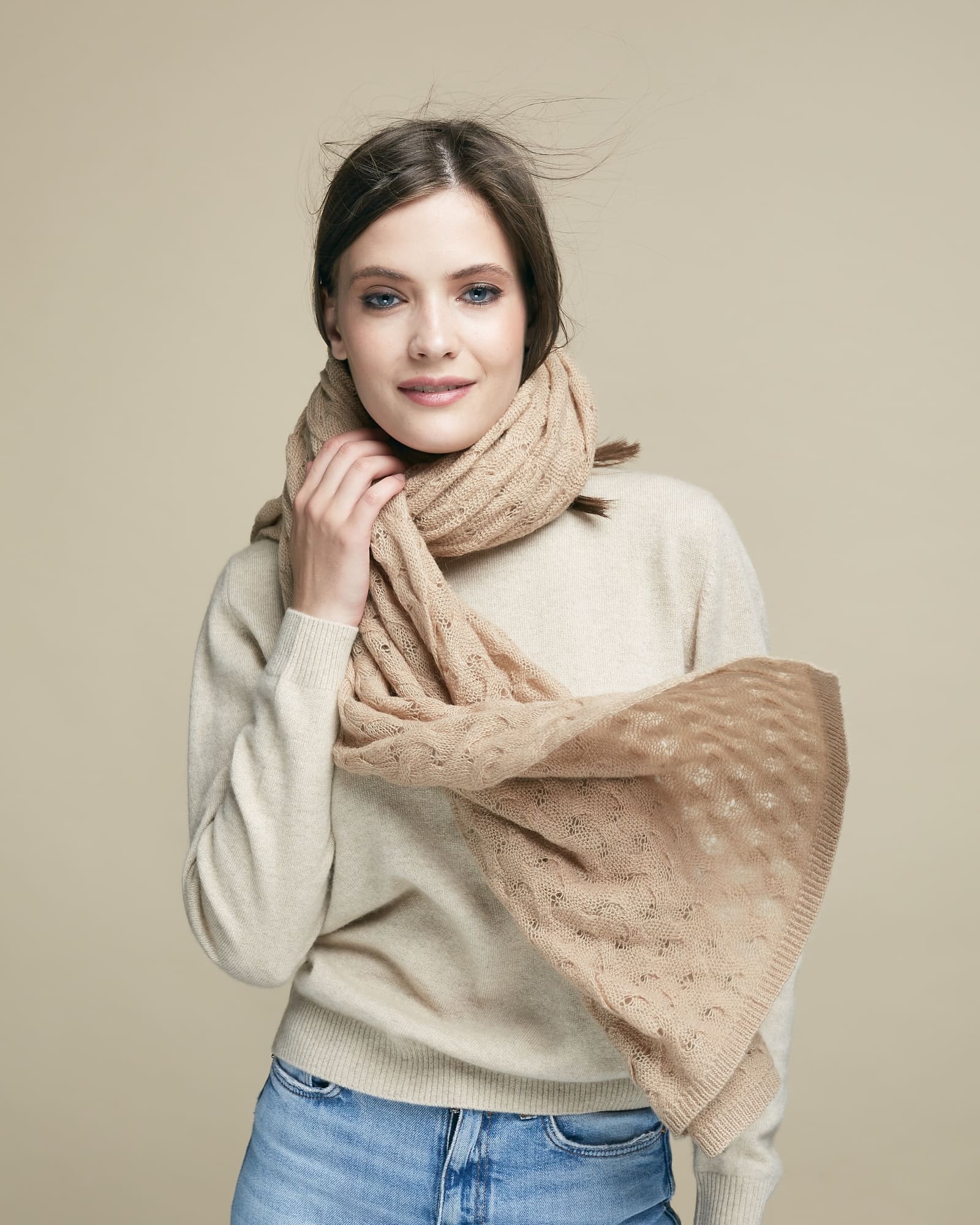 Лёгкий, мягкий и тёплый аксессуар, который можно носить различными способами — как палантин на плечах, как шарф вокруг шеи или как лёгкую накидку. Подходит для повседневной носки, прогулок и путешествий.