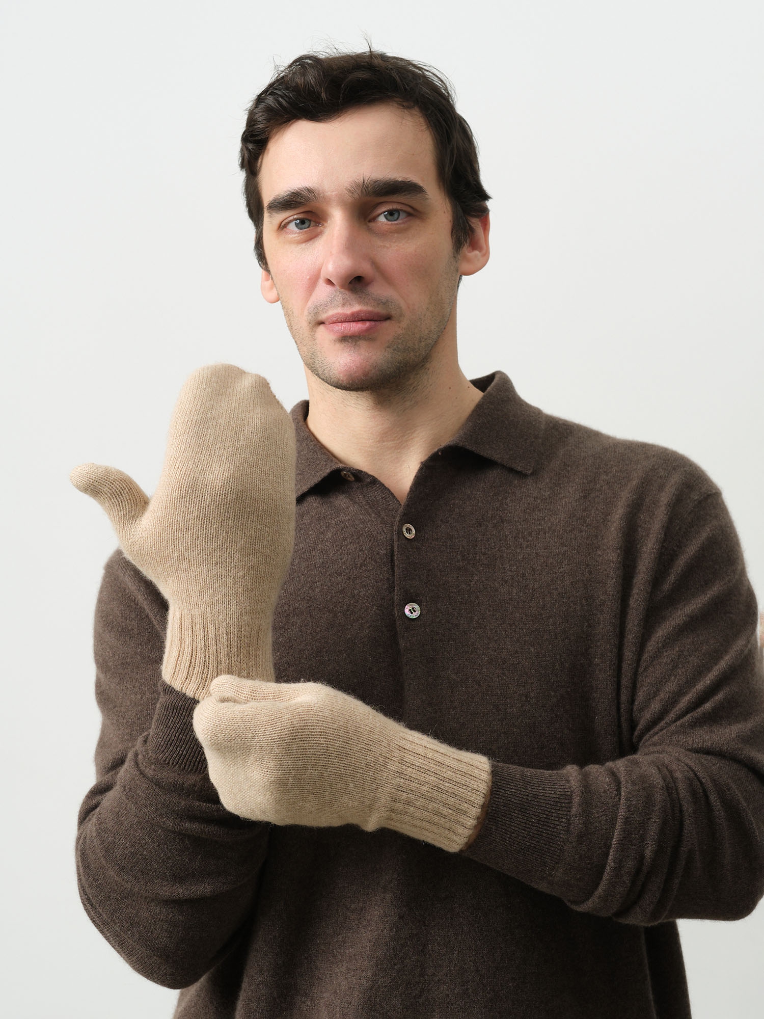 Варежки из шерсти верблюжонка мужские 21ml бежевые