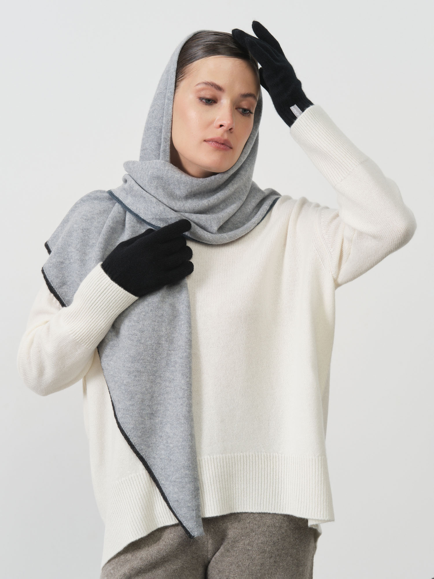 Перчатки выполнены из натурального кашемира — одного из самых ценных материалов благодаря своей мягкости, лёгкости и высокой теплоизоляции. Тонкое волокно эффективно сохраняет тепло, оставаясь «дышащим» и гипоаллергенным. Кашемир обеспечивает высокий уровень комфорта и служит долгие годы