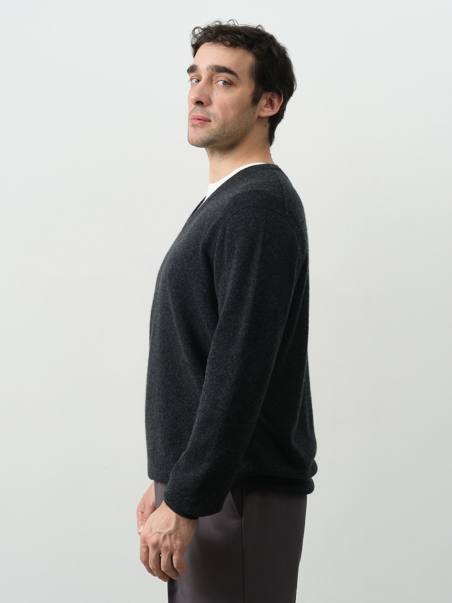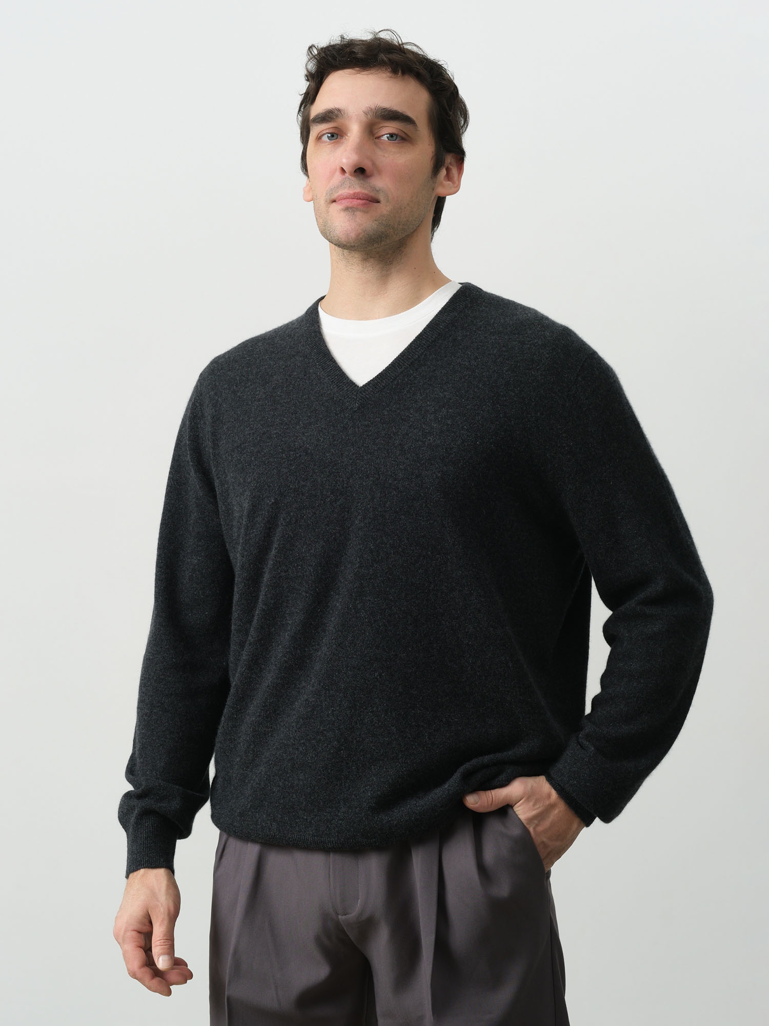 Мужской джемпер из кашемира с V-образным вырезом — элегантная и универсальная модель для создания стильных повседневных и деловых образов.