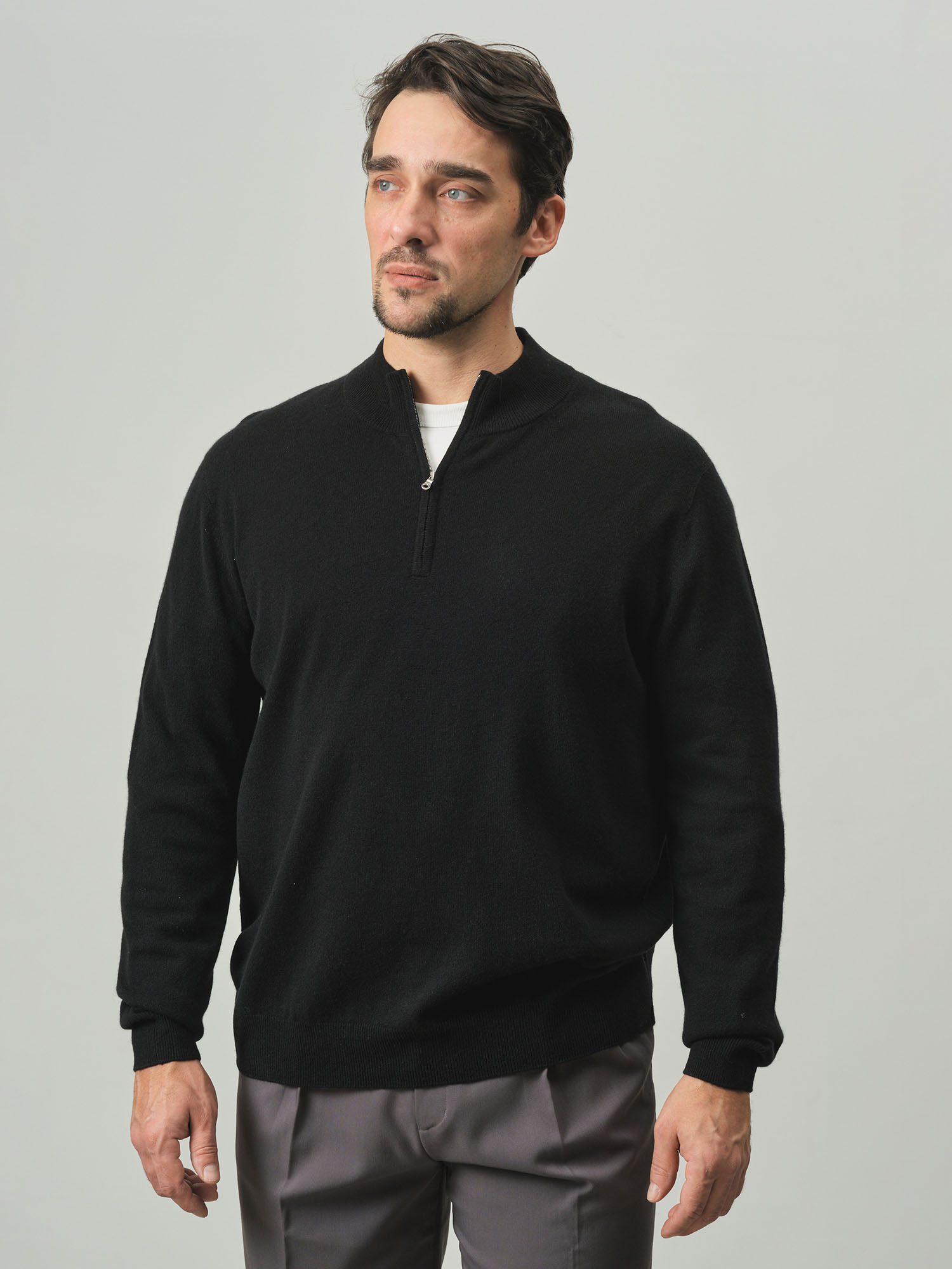 Мужской джемпер из кашемира с воротником на молнии — универсальная модель, сочетающая минимализм, комфорт и практичность. Подходит для повседневного и делового гардероба.