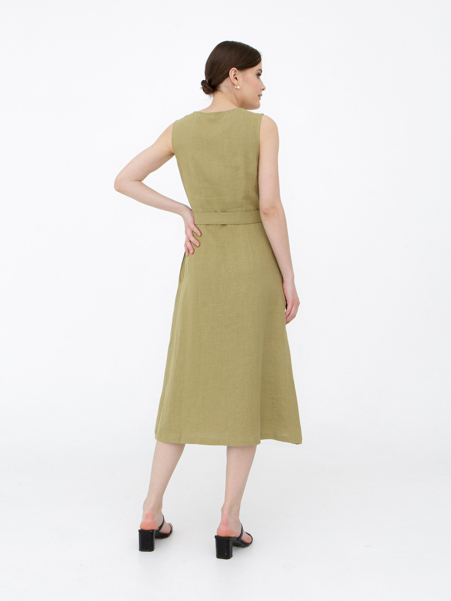 Платье из льна КЛ-7415-ИЛ23 светлый хаки
