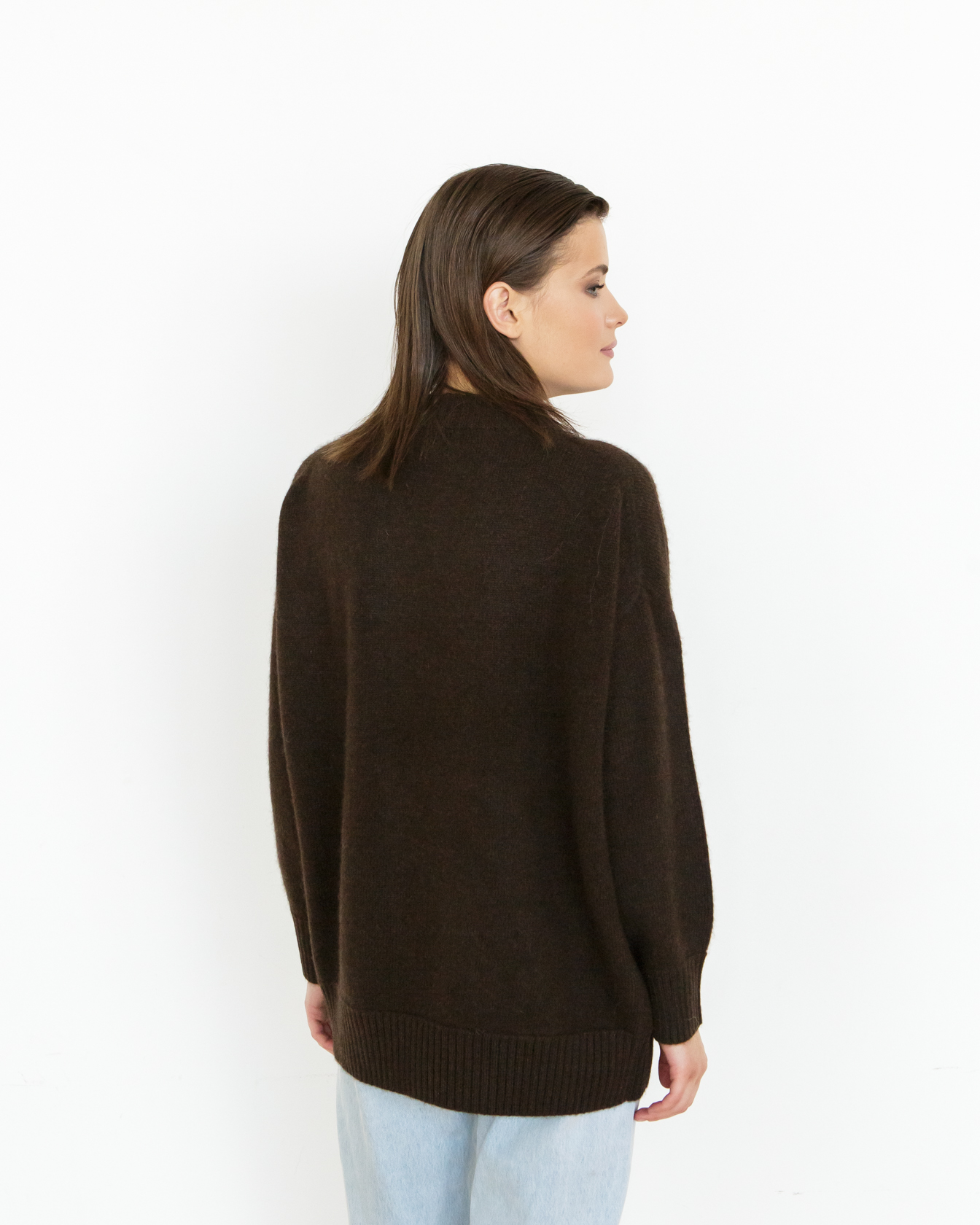 Джемпер из пуха яка — уютная и стильная модель для прохладного сезона. Натуральный материал и свободный силуэт создают ощущение мягкости и комфорта, а лаконичный дизайн делает изделие универсальным элементом повседневного гардероба. Джемпер легко сочетается с джинсами, брюками и юбками, формируя спокойные и элегантные образы.