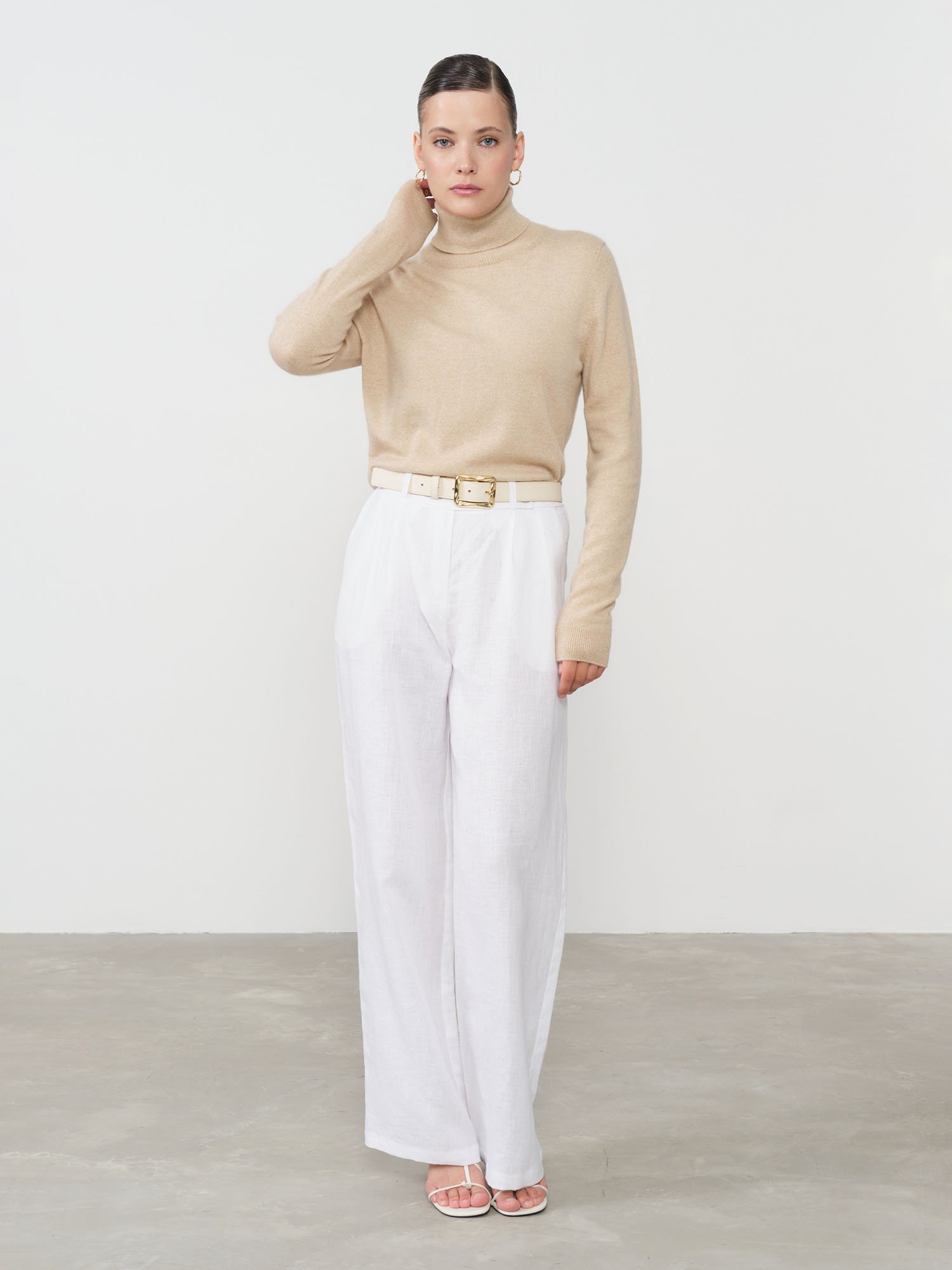 Комфортная посадка мягко повторяет линии фигуры и не сковывает движения. Нежный кашемир обеспечивает лёгкость, тепло и ощущение уюта в течение всего дня.