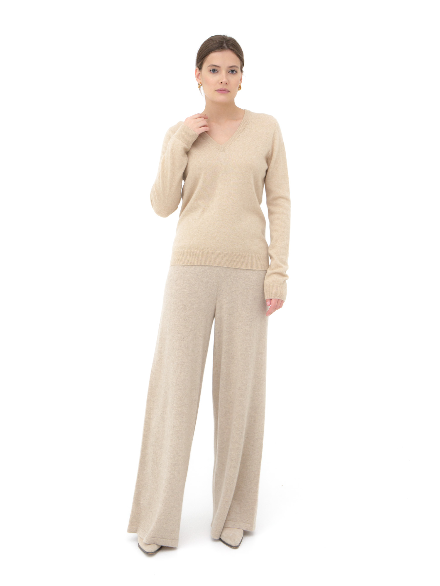 Комфортная посадка мягко повторяет линии фигуры, не сковывая движения. Нежный кашемир обеспечивает лёгкость, тепло и приятные тактильные ощущения в течение всего дня.