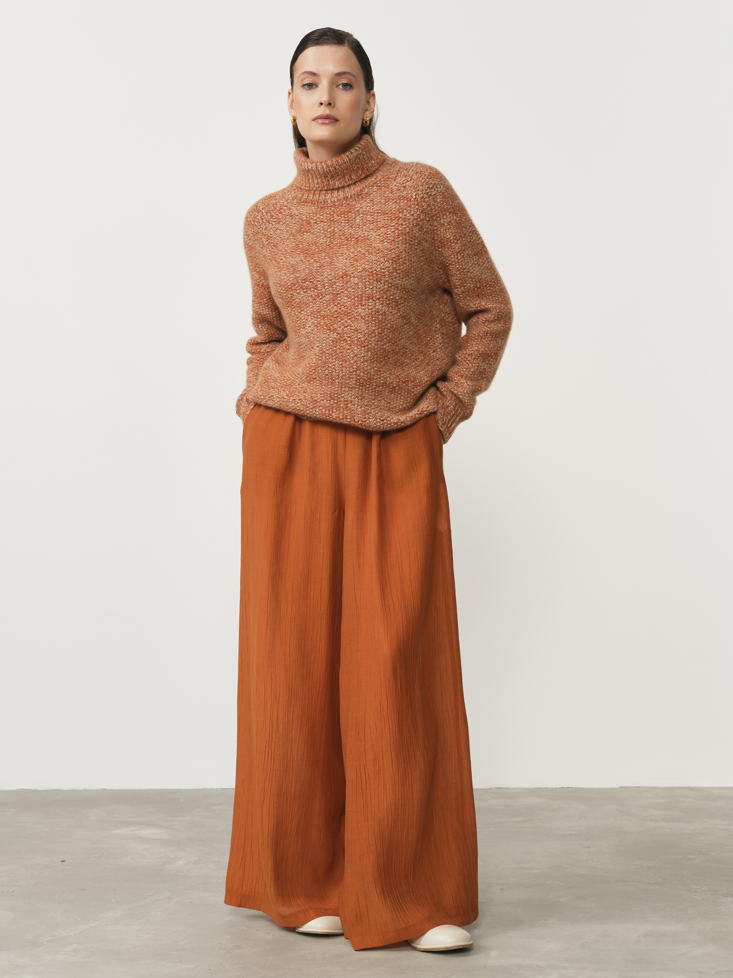 Кашемировый свитер просто очаровательный. Легкий, теплый, уютный. Цвет прям для осени, радует и повышает настроение. Спасибо за красоту и качество!!! |